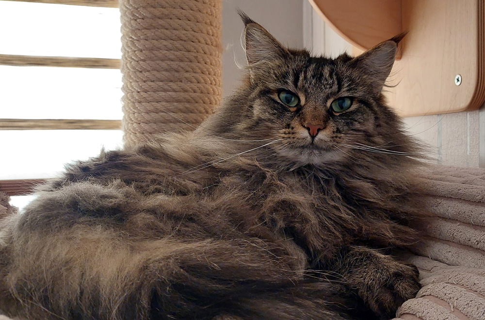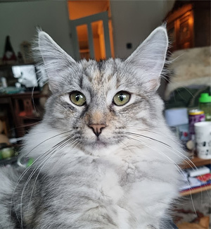 Hij had een heerlijk karakter richting mens en kat en zoekt harmonie. Hij was niet groot. Zijn vachtkwaliteit was uitzonderlijk goed. Hij had een vrijwel recht profiel, een lang lijf met een prachtig behaarde staart. Enkel zijn kin had wat sterker gekund. Het totaalplaatje was voor mij een lot uit de loterij. Ik ben heel blij dat dit lieve ventje in mijn leven kwam!